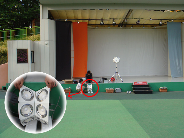 特にNS-8halfの底面同士を合わせた方では、NS-8の広がりに比べて遠くにまで音を飛ばすことが出来、園内の隅々にまで音が行き渡っていました。