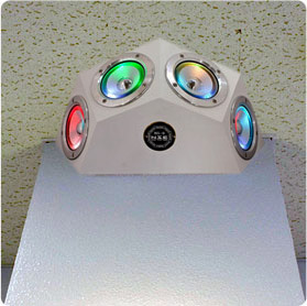 反響音が多い室内プールでも180度方向均一に音を提供する事により反響残像音が気にならない聞き取り易いスピーカーシステムです。